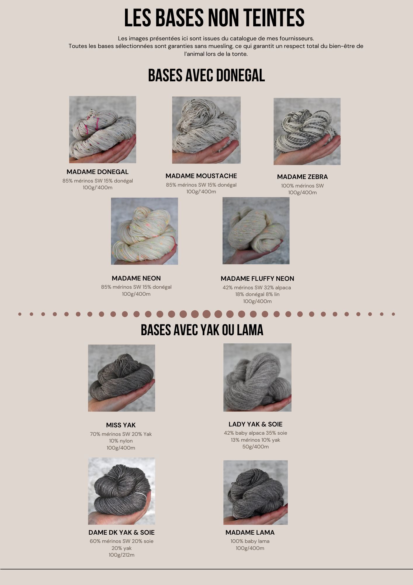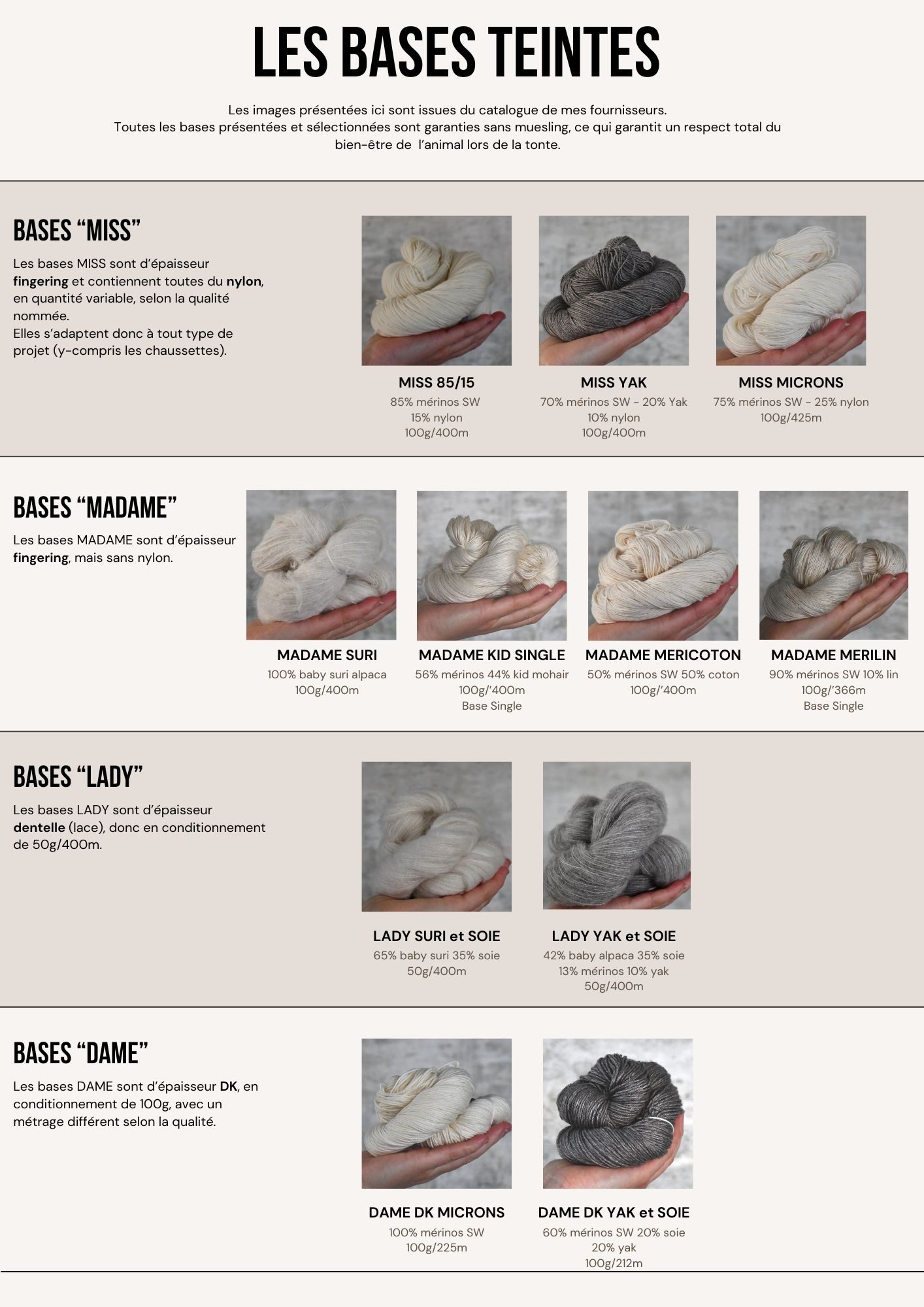 Cette représentation n'est pas exhaustive, mais représente les principales bases non teintes